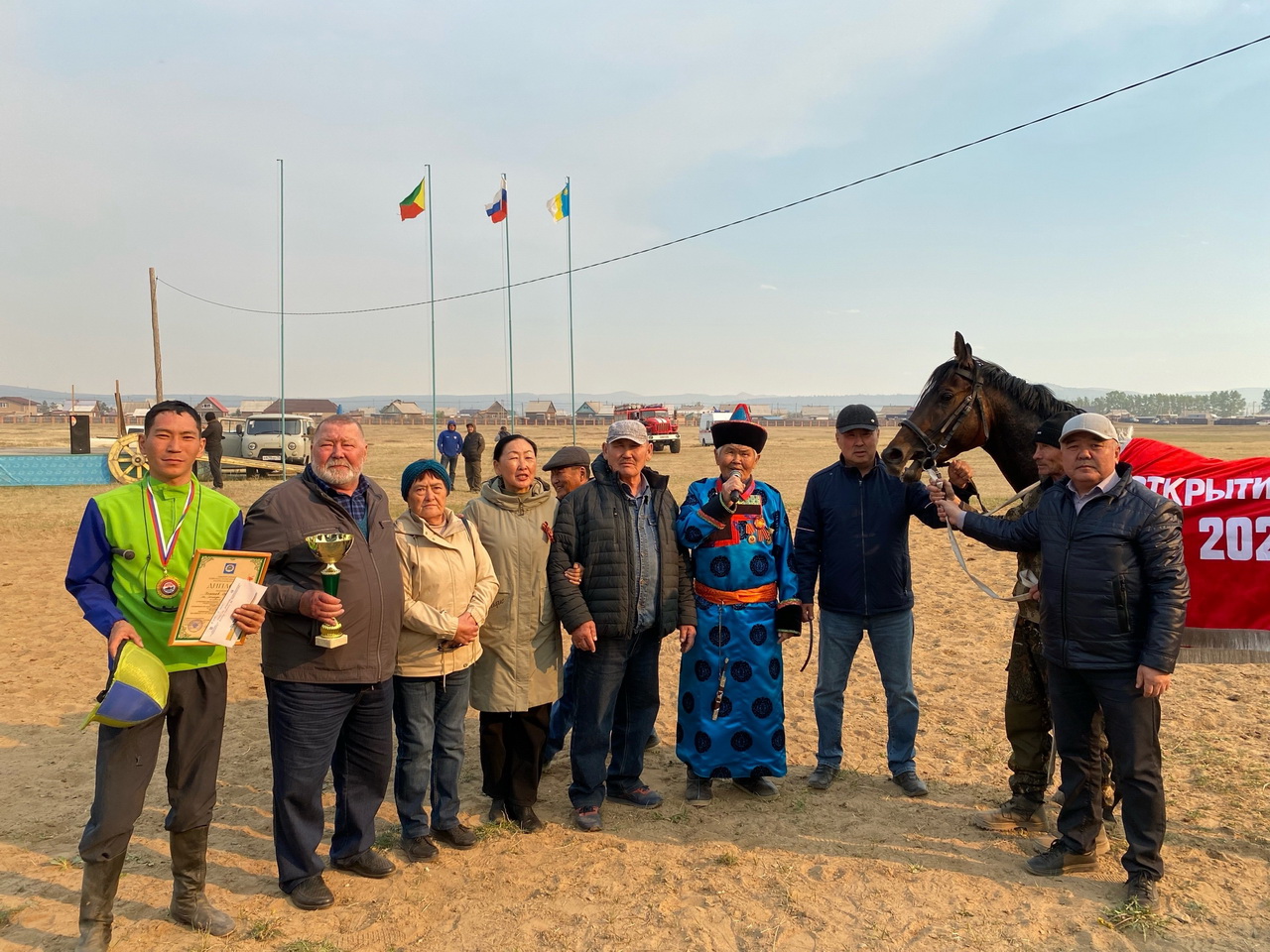 Жокей Сергей Старицын на Фаворитке выиграл на дистанции 1800 метров для кобыл трех лет и старше полукровных пород, рожденных в Забайкальском крае. Учредители приза – Местная общественная спортивная организация конного спорта Агинского Бурятского округа, ООО «Резной дом».