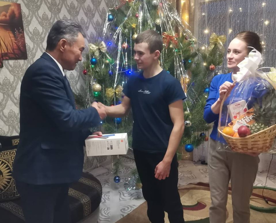 Другой Иван из поселка Новоорловск мечтал о портативной колонке. Он тоже сын героя СВО, талантливый парень, ремонтирует технику и компьютеры. Подарок сенатора РФ с агинской «Ёлки желаний» был вручен Ивану зампредом правительства края - руководителем Администрации Агинского Бурятского округа Б.С.Дугаржаповым.