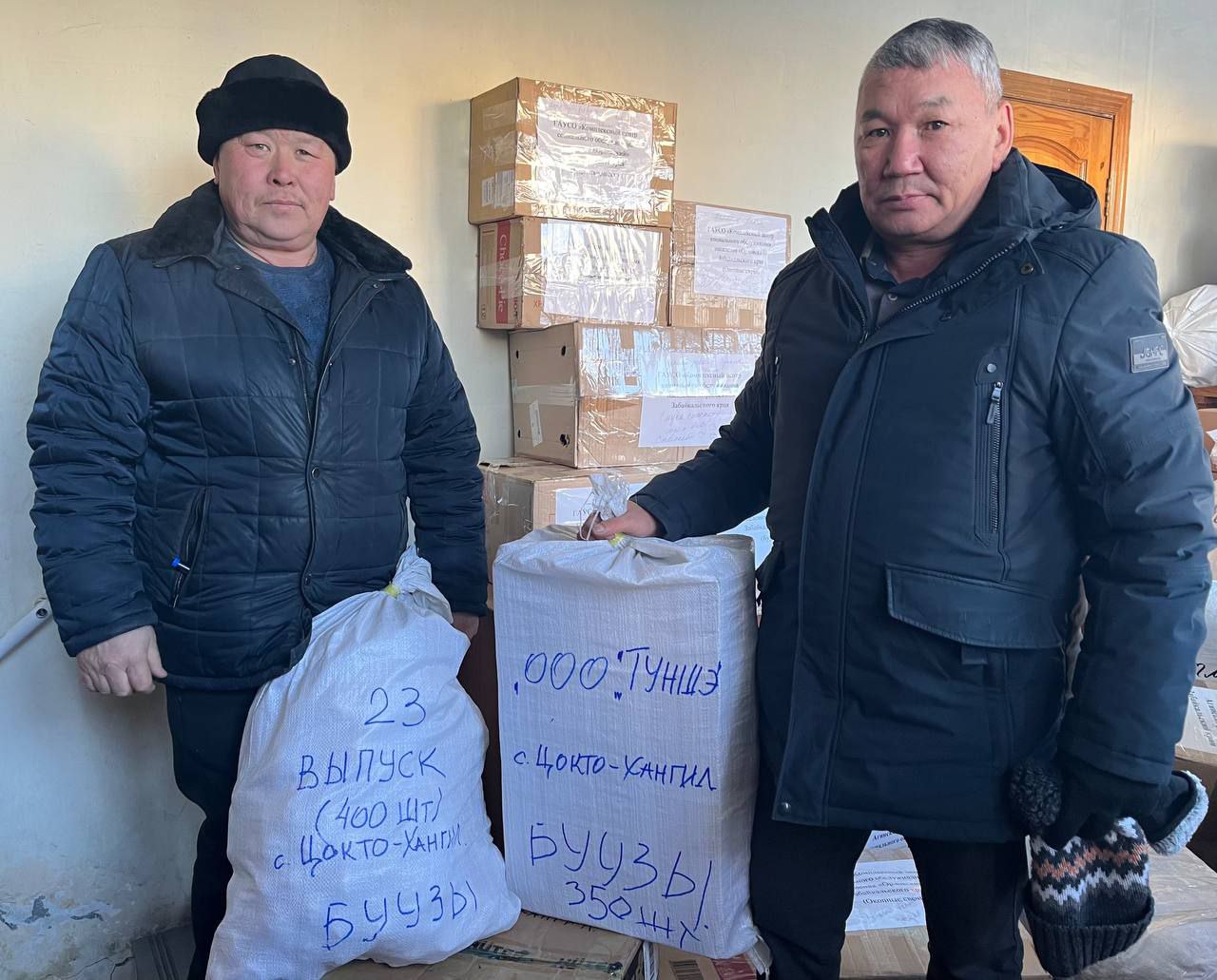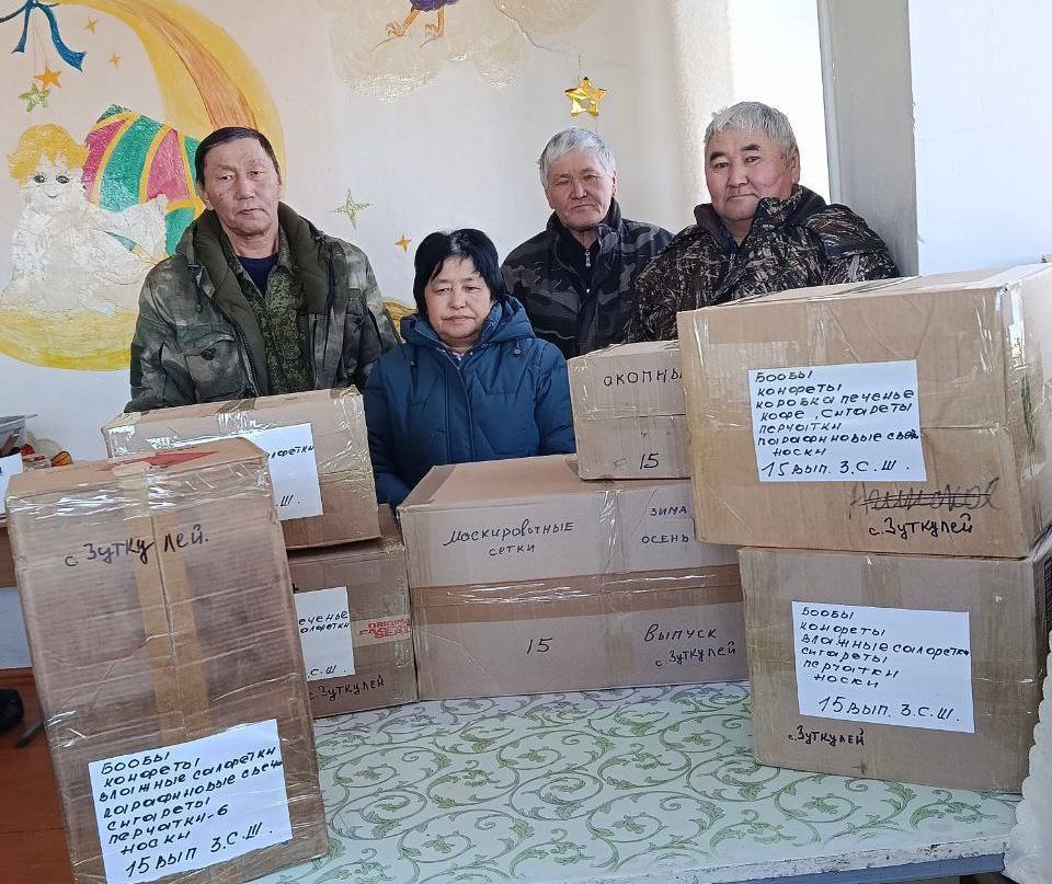 Накануне Нового года жители села Цокто-Хангил привезли большую партию посылок для бойцов СВО: буузы – 3425 шт., окопные свечи – 63 шт., перловую кашу, тушёнку – 60 шт., холисо – 2 кг, аарса – 6,5 кг, пельмени – 3 кг, варенье – 1 л, шоколадные конфеты – 3 кг .