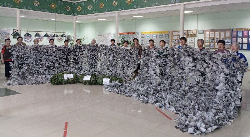 Волонтеры из села Хойто-Ага сплели 55-ю маскировочную сеть, передали буузы и мясные продукты.