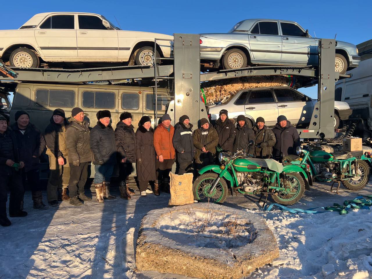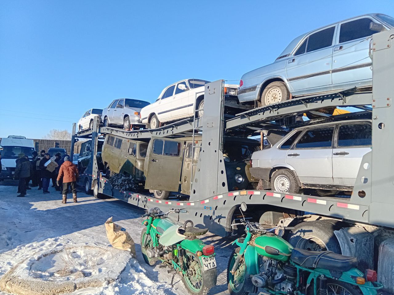 В поселке Могойтуй завершили погрузку машин на два автовоза. На фото наши земляки, их умелыми руками отремонтирована и подготовлена отправляемая техника.