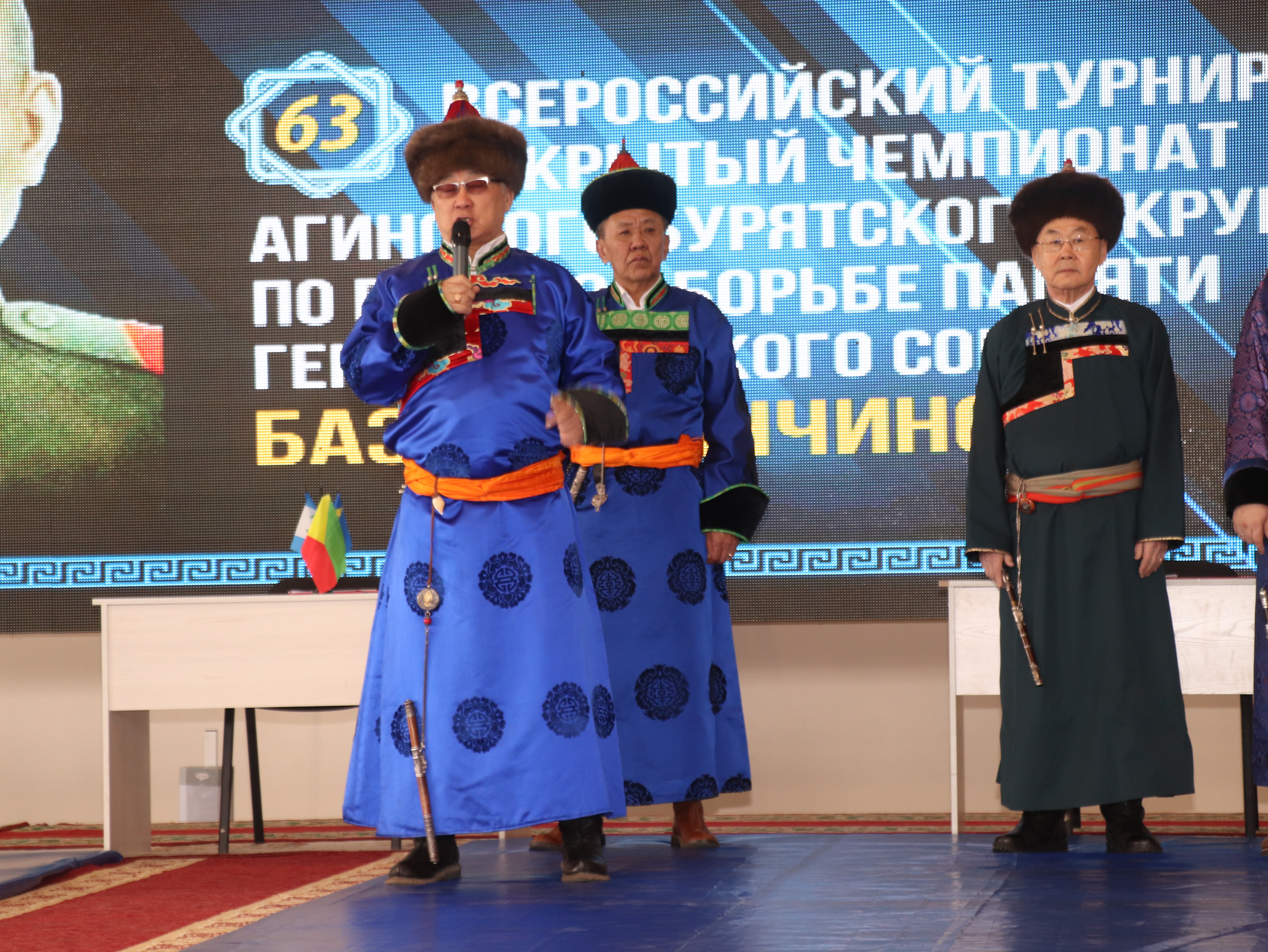 Участников турнира также приветствовали первый заместитель председателя Законодательного собрания Забайкальского края Сокто Мажиев, президент Всебурятской ассоциации развития культуры, президент Федерации спортивной борьбы Республики Бурятия Чимит Бальжинимаев, член исполкома Федерации спортивной борьбы России, вице-президент Федерации спортивной борьбы Республики Бурятия, мастер спорта международного класса Жамсо Лхамажапов, бронзовый призер Олимпийских игр в Пекине, чемпион Азии, бронзовый призер чемпионата мира, заслуженный мастер спорта Базар Базаргуруев, президент Федерации спортивной борьбы Забайкальского края Дашинима Батоболотов.