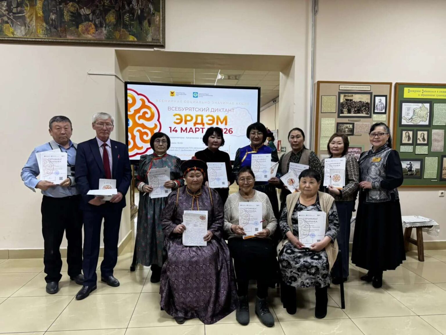 14 марта 2026 года в Агинском Бурятском округе прошла ежегодная социально значимая акция «Всебурятский диктант «Эрдэм». В этом году в округе было организовано 76 площадок на базе школ, учреждений дополнительного образования, библиотек и средних профессиональных учебных заведений.