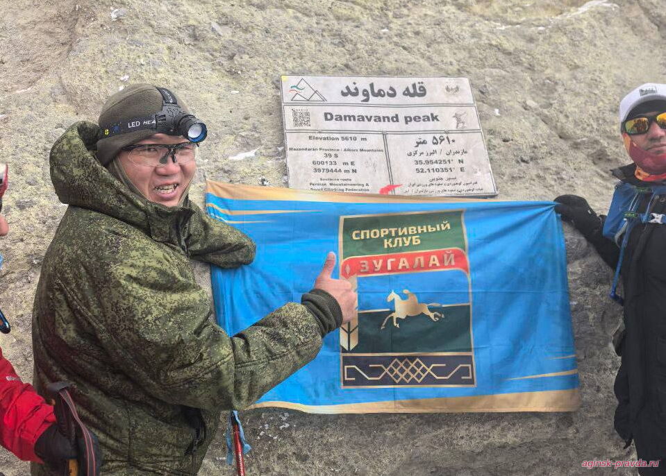 Зугалаец, участник специальной военной операции, лейтенант Садо Ширабнимбуев (на снимке), участвовавший в составе делегации Вооруженных сил РФ в восхождении на гору Демавенд в Иране, поднял на высоте 5610 метров флаг спортивного клуба «Зугалай».