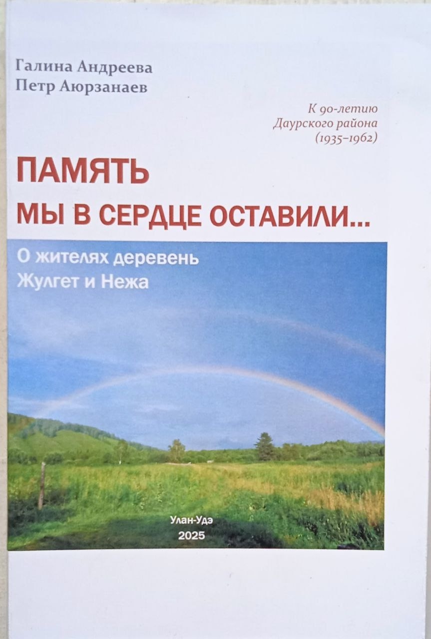 Те, у которых родственники были раскулачены в начале 1930-х гг. и отправлены в ссылку в Красноярский край, где отбыли незаслуженное административное наказание до 1956 года, готовится к печати в издательстве БГУ им.Д.Банзарова (г.Улан-Удэ) книга Галины Андреевой и Петра Аюрзанаева «Мы память в сердце оставили...» о жителях деревень Жулгет и Нежа, посвящённая памяти наших дедушек и бабушек, родителей, отбывших кулацкую ссылку в 1931-1956 гг. в Даурском районе Красноярского края.