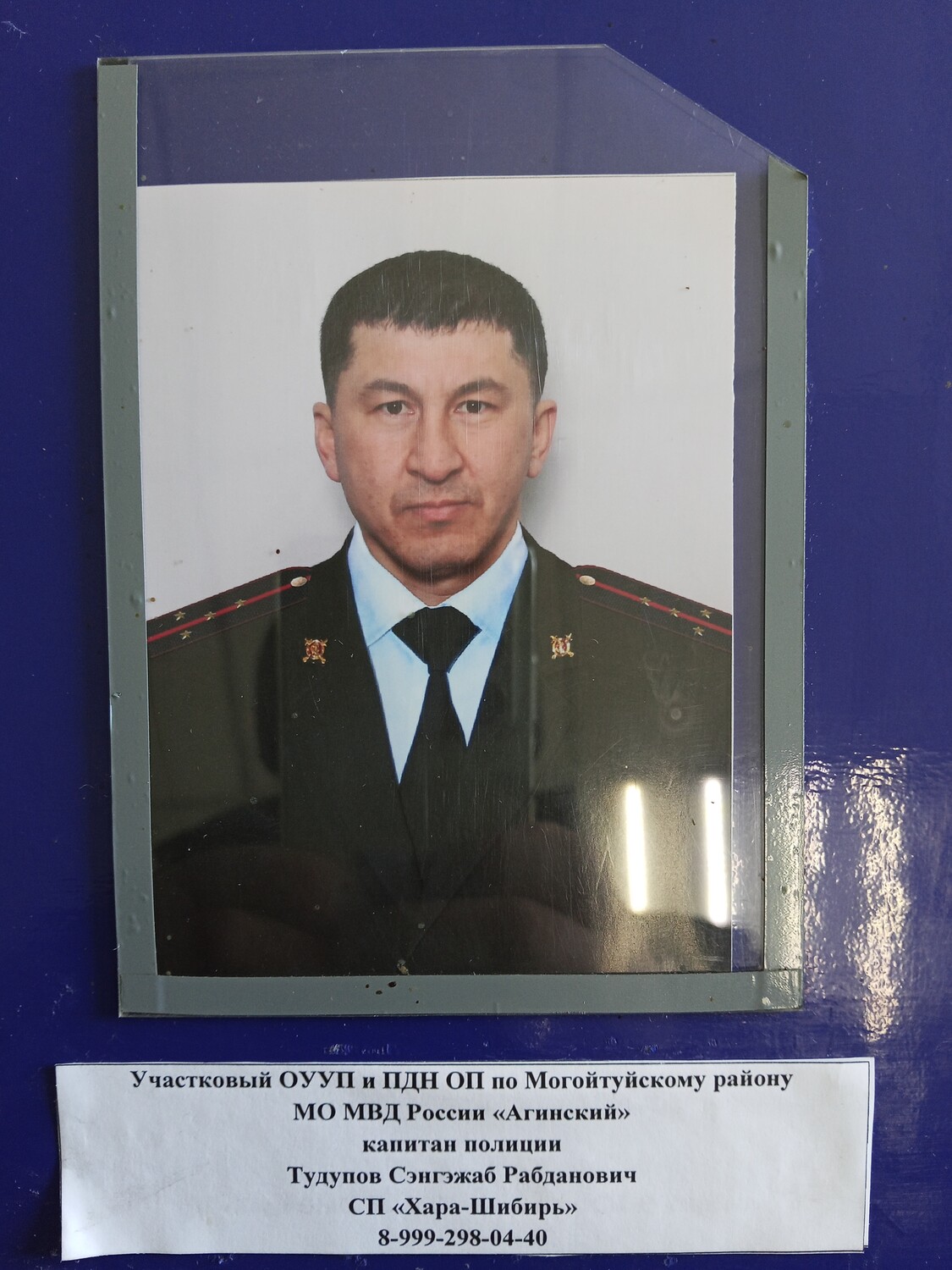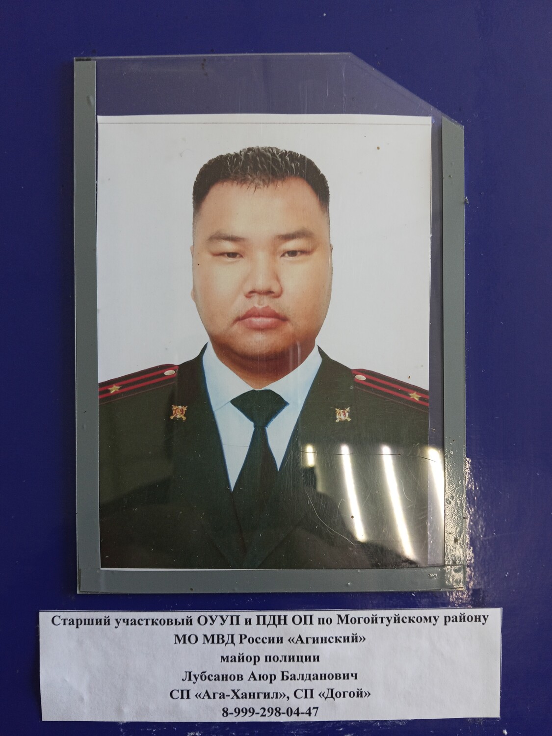 Седьмого ноября 2025 года в п.Могойтуй премию лучшему участковому имени Жалсарая Батуева в торжественной обстановке вручили майору полиции, старшему участковому полиции ОУУП и ПДН ОП по Могойтуйскому району МО МВД России «Агинский» Аюру Балдановичу Лубсанову (на снимке вверху). В органах внутренних дел служит с 15 августа 2006 года.