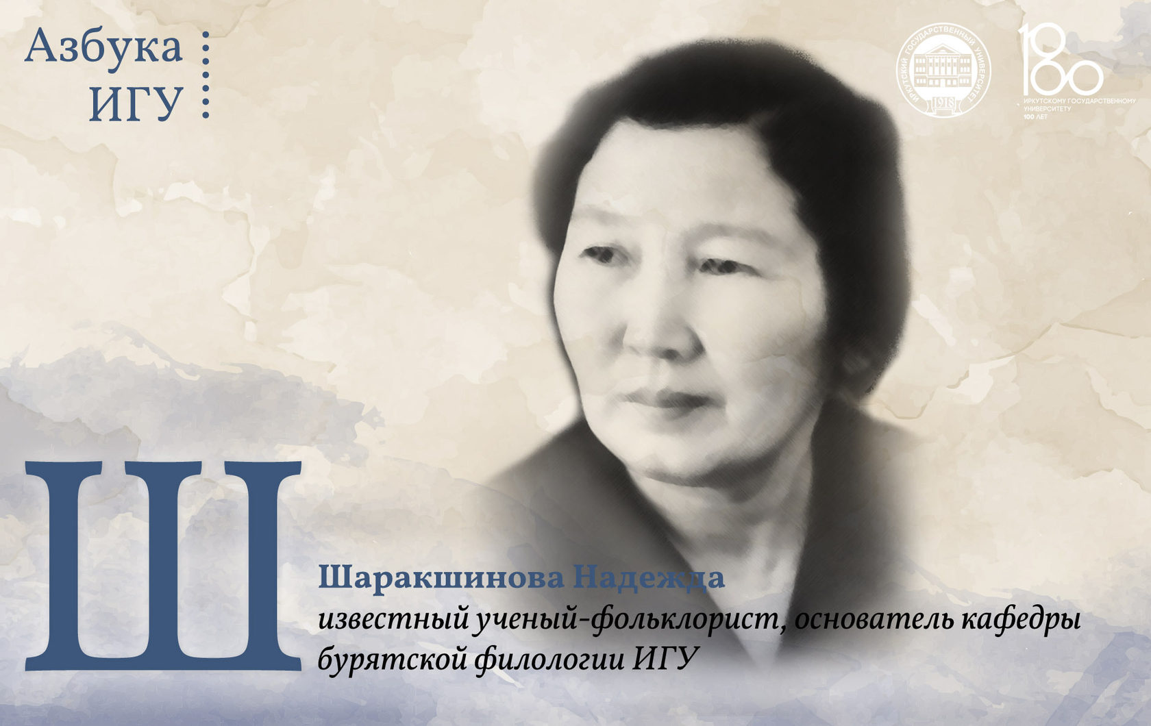 В институте филологии, иностранных языков и медиакоммуникации Иркутского государственного университета состоялась научно-практическая конференция «Мир фольклора в контексте истории и культуры монгольских народов», посвящённая 110-летию со дня рождения видного учёного-фольклориста, доктора филологических наук Надежды Осиповны Шаракшиновой (на снимке), многие годы работавшей на бурятском отделении филологического факультета университета и воспитавшей немало педагогов, ученых и людей творческих профессий.