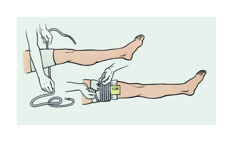 Алгоритм постановки кровоостанавливающего жгута. Наложите жгут на одежду или мягкую подкладку чуть выше раны. Свободный край жгута приложить в месте пальцевого прижатия. Обернуть жгут вокруг конечности, закрепить. Если используются эластичные типы жгутов, незакрепленный край умеренно растянуть. Сделать три-четыре оборота жгутом вокруг конечности. Закрепить оставшийся край. Через минуту проверить пульс. Если фиксация проведена правильно, пульс отсутствует.