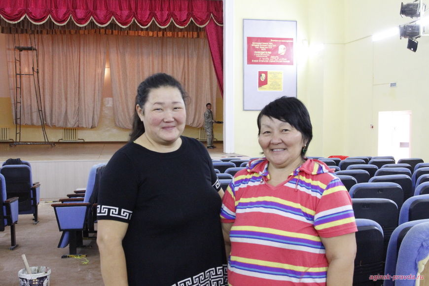 Ремонтные работы были проведены по программе «Развитие культуры в Забайкальском крае (2014-2020 годы)», об этом нам при встрече поведала заведующая филиалом межпоселенческого центра досуга Могойтуйского района Туяна Цырен-Намдаковна Доржиева (на снимке). Генеральный подрядчик - читинская компания ООО «Альфастрой» (директор Олег Александрович Тетушкин) - приступил к работе третьего июля, за летние и осенние месяцы проделан большой объем работ – завершен ремонт системы отопления, ремонт полов, кровли здания, установлены подвесные потолки, и в день нашего приезда в здании и снаружи завершались отделочные работы. Директор Дома культуры была довольна качеством проведенных работ, хорошо отозвалась о строителях из солнечного Узбекистана – все они неплохо владеют русским языком, в общении простые, с местным населением сложились хорошие отношения. Свое дело строители хорошо знают, отлично поработали, и на днях, по словам Туяны Цырен-Намдаковны, на селе состоится открытие после капитального ремонта обновленного Дома культуры. Сейчас она пишет заявку на обновление материально-технической базы клуба, которая давно устарела, и надеется, что, как и у соседей – зугалайцев, их Дом культуры так же получит новое оборудование.