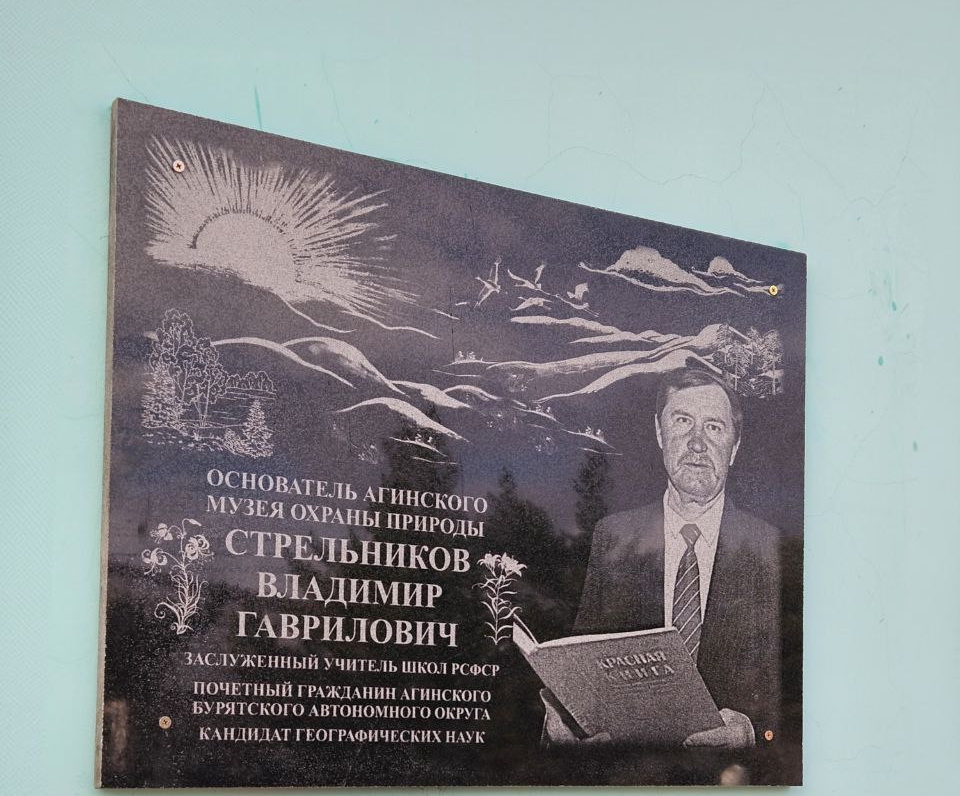 Состоялась торжественная церемония открытия мемориальной доски на фасаде Музея природы в п.Агинское памяти знаменитого краеведа, заслуженного учителя школы РСФСР, почетного гражданина Агинского Бурятского автономного округа и создателя первого в Забайкалье музея охраны природы Владимира Гавриловича Стрельникова.