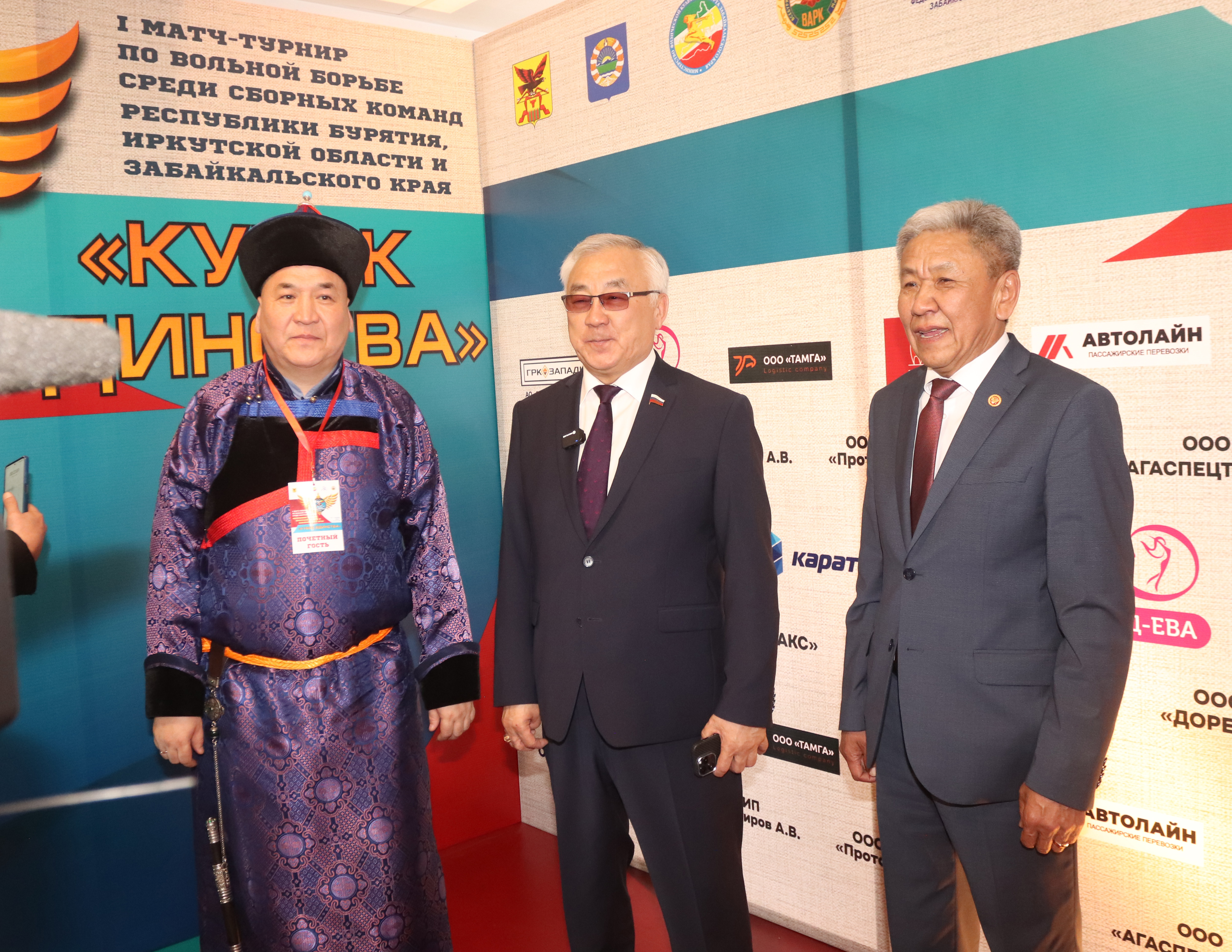 Он подчеркнул, что инициатором и вдохновителем первого межрегионального турнира «Кубок единства» выступил сенатор Российской Федерации Баир Жамсуев. Тем более знаменательно, что турнир прошел в Год единства народов России, объявленного Президентом страны. В числе почетных гостей - первый заместитель председателя Законодательного собрания Забайкальского края Сокто Мажиев, Президент Всебурятской ассоциации развития культуры, президент Федерации спортивной борьбы Республики Бурятия Чимит Бальжинимаев, первый заместитель председателя Законодательного собрания Иркутской области, президент Федерации спортивной борьбы Иркутской области Кузьма Алдаров, заместитель губернатора Иркутской области - руководитель администрации Усть-Ордынского Бурятского округа Александр Гоголев, главный судья соревнований - судья всероссийской и международной категорий из Красноярска Александр Донзаленко.