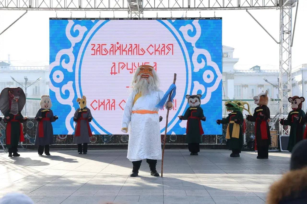 На центральной площади Читы 18 февраля встретили Сагаалган - праздник Белого месяца, который традиционно празднуют в Забайкалье не только буряты, но и представители всех народов, проживающих в регионе. В этом году празднование Сагаалгана было приурочено, в том числе, к Году единства народов России, который был объявлен Президентом России В.В.Путиным.