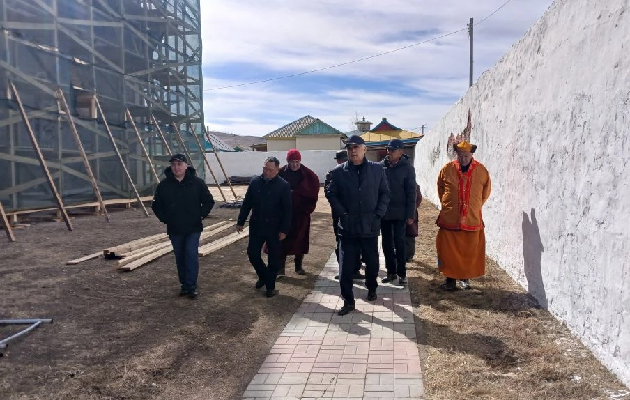 Исполняющий обязанности заместителя председателя правительства Забайкальского края - руководителя Администрации Агинского Бурятского округа Ананда Дондоков и сенатор Российской Федерации Баир Жамсуев проконтролировали ход ремонтно-реставрационных работ в Согчен-дугане Цугольского дацана.