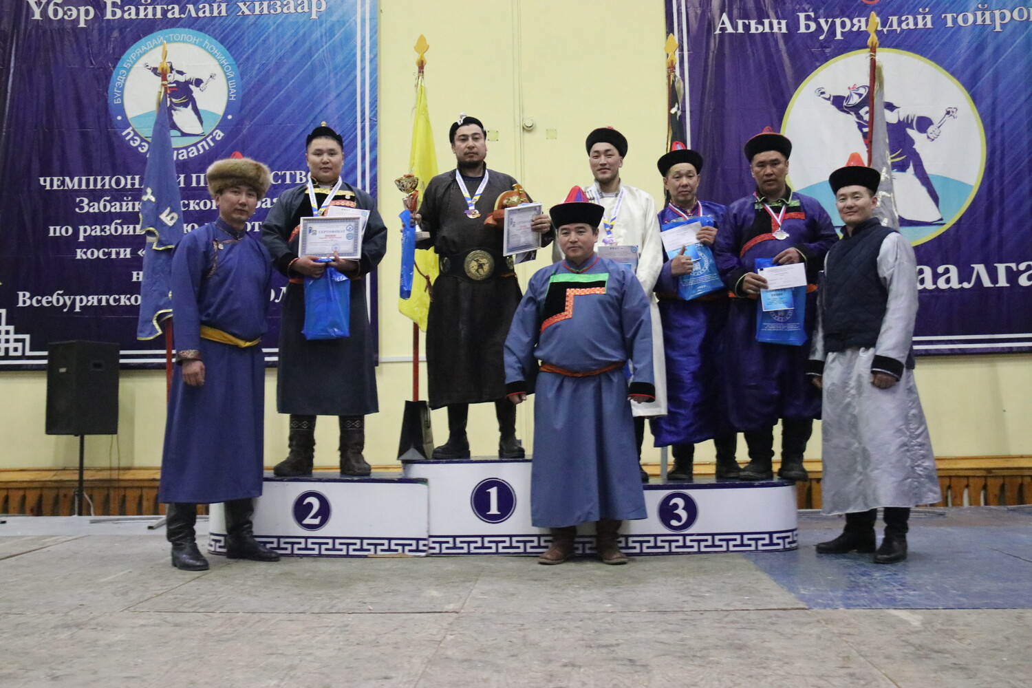 На закрытии турнира отмечены самый возрастной участник, им стал 66-летний Рыгзын Лубсанов из Ортуя, и самый юный костолом – семилетний Аюша Дашипильчинов из Зуткулея. Также награды за отличную технику ударов получили Юмдылык Жигмитжамсоев (Цаган-Оль), Аюша Цыбикжапов (Узон) и Аюша Дашипильчинов (Зуткулей). Абсолютным чемпионом ХI чемпионата Забайкальского края на призы Всебурятской газеты «Толон» стал Артур Цыбикжапов из села Боргой Джидинского района Республики Бурятия. Второе место занял Алексей Очиров из села Узон Дульдургинского округа, третье – Дамба Лхамажапов из села Догой Могойтуйского округа. Четвёртое и пятое места заняли Юрий Селезнев из Хара-Шибири и Бато Нимадоржиев из Зугалая.