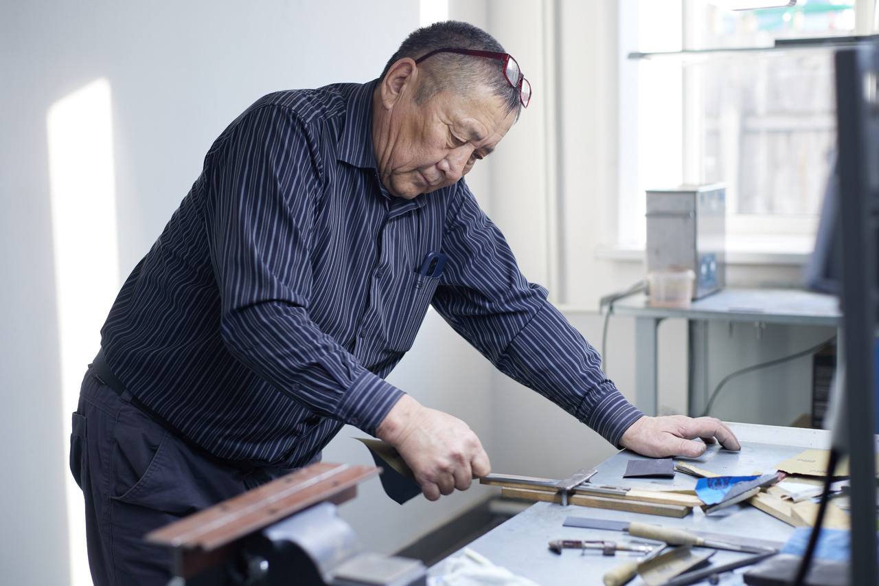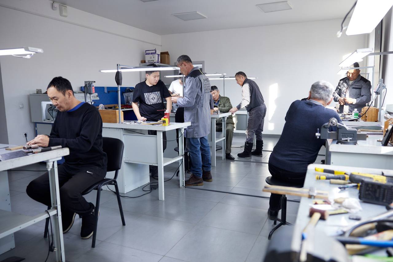 Школа-мастерская МАБО - это практическая среда для развития оружейников и ювелиров, она оснащена всеми необходимыми инструментами для полного цикла, имеются ювелирные инструменты, верстаки, станки с ЧПУ для резки дерева, металла, шлифовки, заточки, материалы для изготовления клинков, рукоятей, расходный материал. Об этом нам рассказал мастер кожевенного отдела, преподаватель оружейного отдела и специалист экспозиционного выставочного центра Гэсэр Дашиев.