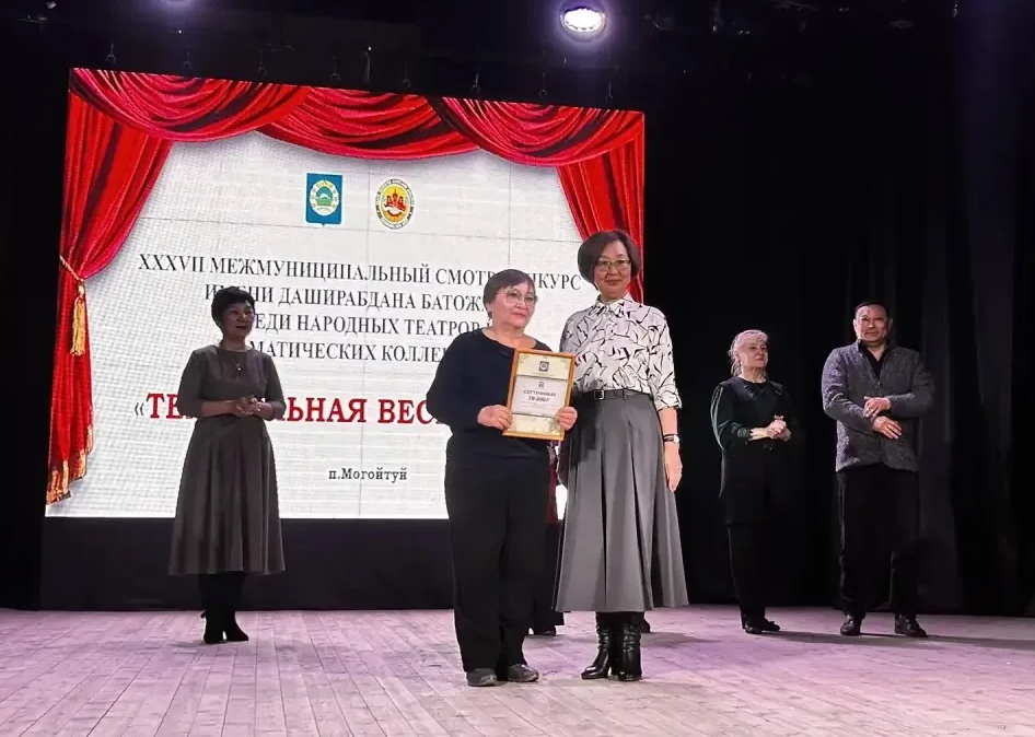 Специальный приз «Дебют пьесы» в постановке народного театра имени заслуженного работника культуры АБАО Жаргала Жербаева вручен режиссеру Цокто-Хангильского народного театра «Будамшуу» Баярме Шойдоковой.