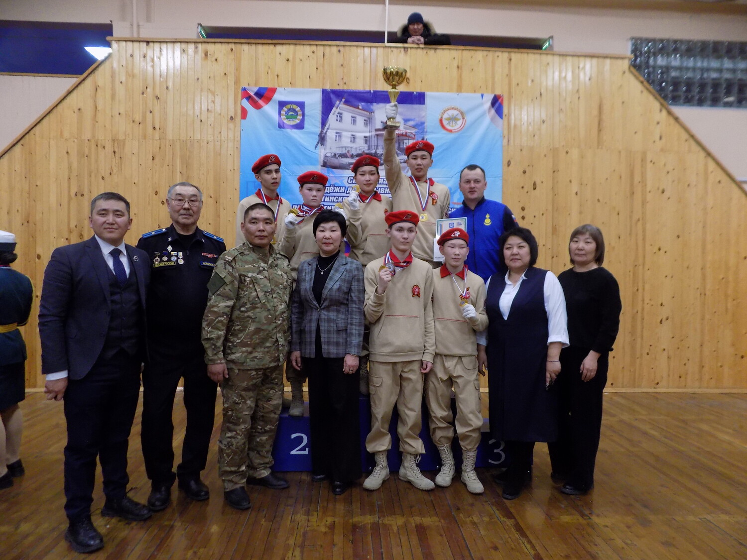 В военно-строевой подготовке команда Агинской окружной гимназии-интерната под руководством Владислава Хасанова продемонстрировала безупречное мастерство и абсолютную слаженность строевого шага. На втором месте команда Агинской СОШ №1 (Буянто Батоболотов), на третьем – Урда-Агинская СОШ (Аюр Дамчинов).